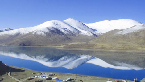 | Vẻ đẹp Tây Tạng hồ xanh và tuyến trắng. |
