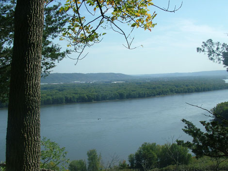 | Dòng sông Mississippi nhìn từ đồi mộ người da đỏ. |