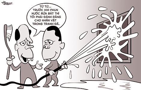 Họa sĩ: Vừa qua, người ta đã trao cho một ông thợ dùng kiểu vệ sinh như thế lau bức tranh “Vườn Xuân” của bác Trí, lau cẩn thận, lau chi li, lau đi lau lại.