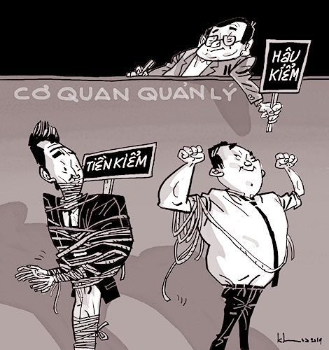 Trong khoa học quản lý, có 2 công cụ giúp nhà quản lý giám sát việc thực thi công việc của cấp dưới, đó là tiền kiểm và hậu kiểm. Xin lấy ví dụ trong quản lý doanh nghiệp để minh họa cho vấn đề này: