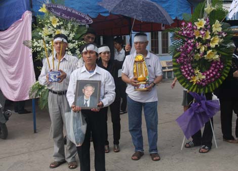 | Tang lễ nhạc sĩ Thanh Bình chỉ với vài người thân đưa tiễn. |