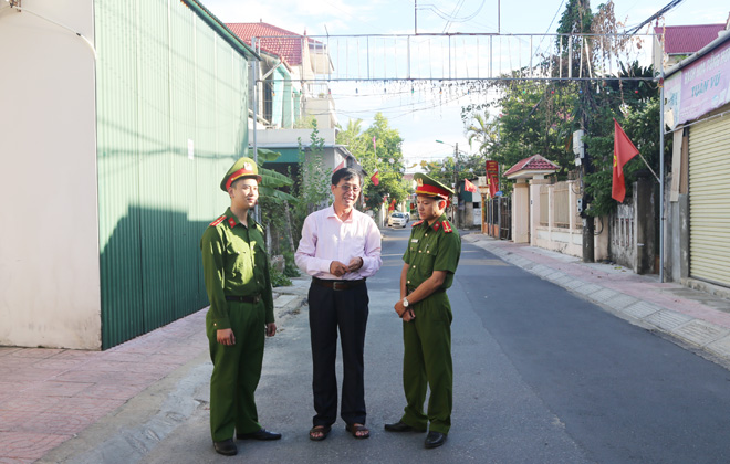 Ông Hòa thường xuyên tham mưu cho Công an phường Trần Phú có nhiều cách làm hay trong đảm bảo ANTT tại tổ dân phố. |
