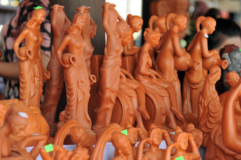 Tôi đã sưu tầm được hai bình rượu của anh làm cách đây dăm năm. Sự độc đáo do nét cách điệu bởi tay cầm là thân của vũ nữ Chăm, cùng với chiếc vòi là hình mỏ chim đại bàng. Vậy mà giờ đây khi đến quán hàng của anh trên sông Hương, trong Lễ hội Festival làng nghề (tháng 5/2015), tôi bắt gặp lại nó, những bình rượu với cách thể hiện khác lạ. Bố cục độc đáo hơn với cảm xúc say đắm hơn. Đó là bầu vú của người Chăm. Nõn nà và rạo rực sức sống tạo nên một bình rượu làm say mê lòng du khách. Tôi ngớ người ngắm nhìn bình rượu, bồi hồi trong cảm xúc rất lạ và thấy rất gần gũi.