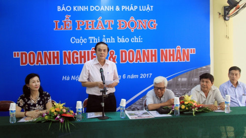 | Nhà báo Lưu Vinh, Tổng Biên tập Báo Kinh doanh và Pháp luật phát biểu tại “Lễ phát động Cuộc Thi ảnh báo chí” năm 2017. |