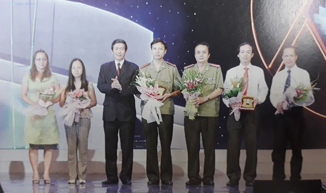 | Nhà báo Lưu Vinh (thứ 3 từ phải sang) nhận giải B Giải Báo chí Quốc gia năm 2006. |