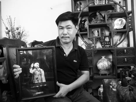 | Nghệ nhân Nguyễn Duy Hải với chân dung Bác Hồ. |