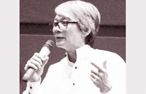 | Nhà thơ Mai Linh trong một cuộc giao lưu âm nhạc. |