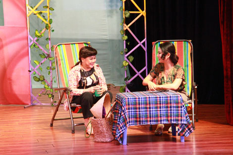 | Nghệ sĩ Ái Như (trái) và diễn viên Lương Duyên trong vở "Rau răm ở lại". |