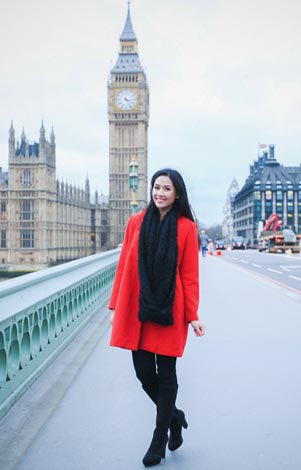 Nguyễn Thị Loan khi ở Anh tham gia cuộc thi Hoa hậu thế giới. |