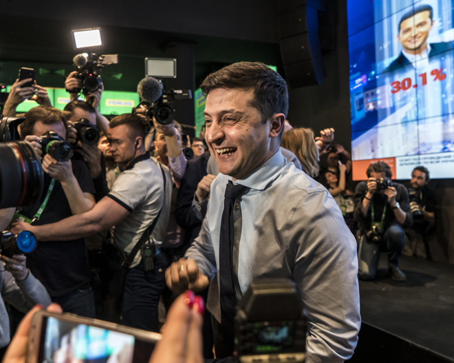 Zelenskiy, 41 tuổi, là một diễn viên hài độc lập, là một trong những diễn viên nổi tiếng nhất Ukraine. Trong chương trình của mình, "Người hầu của nhân dân", ông vào vai một giáo viên trường học thức dậy và thấy rằng một bình luận ông đưa ra chống lại các chính trị gia tham nhũng đã lan truyền và đưa ông lên làm tổng thống. Bây giờ, Zelenskiy, người không có kinh nghiệm chính trị trước đây, đang tìm cách hoàn thành kỳ tích trong cuộc sống thực.