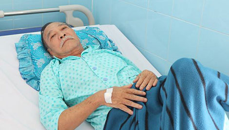Nhạc sĩ Trần Quang Lộc trên giường bệnh.