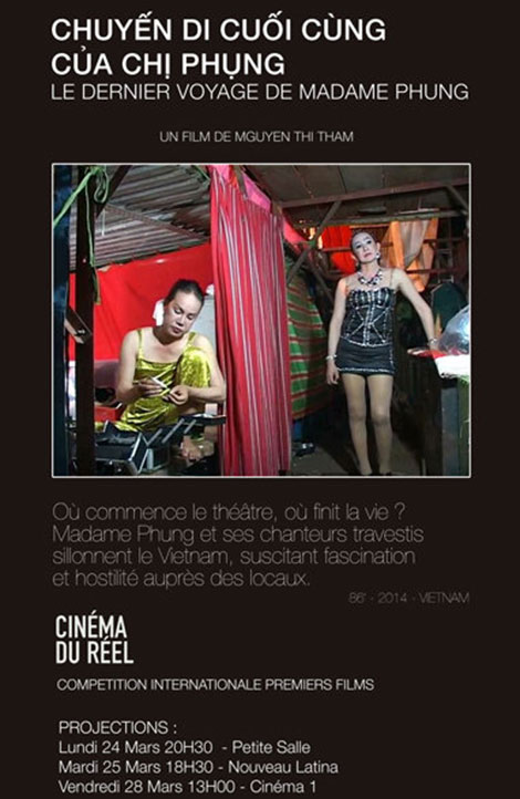 Chuyến đi cuối cùng của chị Phụng của đạo diễn Nguyễn Thị Thắm từng tham dự LHP tài liệu nổi tiếng Cinéma du Réel lần thứ 36 Paris. Bộ phim dài 86 phút này được tuyển chọn trong phần thi quốc tế phim đầu tay. Phim cũng tham dự gần 10 LHP quốc tế khác tại Indonesia, Đài Loan, Philippines, Luang Prabang...; và được trình chiếu ở nhiều nơi trên thế giới như Paris, Nimes, Lyon, Marseille (Pháp), Phần Lan, New York (Mỹ). Trên trang Rottentomatoes, một trang tập hợp những bài bình luận điện ảnh uy tín của Mỹ, Chuyến đi cuối cùng của chị Phụng có 5 bài bình luận, cả năm đều dành số điểm tuyệt đối 10/10, trong đó có những bài trên các tờ báo nổi tiếng như New York Times, The Village Voice hay Chicago Reader. Tại Việt Nam, bộ phim được hãng phim Blue của diễn viên Hồng Ánh phát hành độc lập và tạo nên một cơn sốt chưa từng có với phim tài liệu trước đây. |