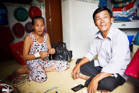 | Vợ chồng Mạnh Thường trong căn phòng chật hẹp. |