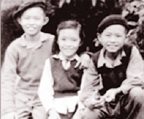 | Ba anh em Nguyễn Quang Hiển, Nguyễn Thị Quang Diệu, Nguyễn Quang Thái (bìa phải) tại nơi tản cư ở Tuyên Quang năm 1952 |