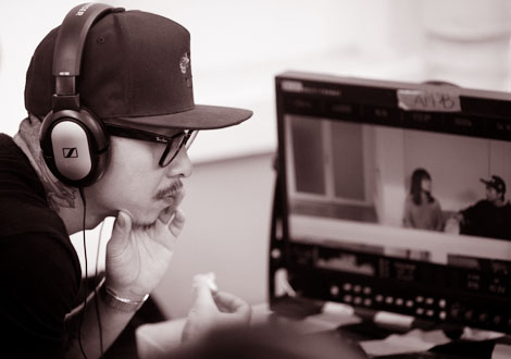 | Việt Max tại hậu trường bộ phim “Yêu” do anh làm đạo diễn. |