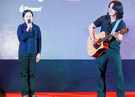 | Lê Minh Sơn trong chương trình Du ca Việt. |