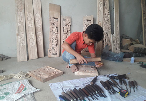 Thế nhưng không thể mãi làm thợ, năm 2016, anh quyết định trở về nhà mở xưởng mộc riêng từ số số tiền tiết kiệm và vay mượn thêm. Người thân trong nhà cũng góp sức anh xây dựng nên nhà xưởng để tiết kiệm chi phí. Nhìn xưởng mộc gần mặt đường hiện tại đang hoạt động máy móc liên tục, tôi cũng mừng thay anh. Ngoài thiết bị đồ nghề cơ bản đủ để làm nghề, anh tìm mua gỗ xoan, gỗ mít để làm ra sản phẩm như hoành phi, câu đối, bàn thờ, giường, tủ,….