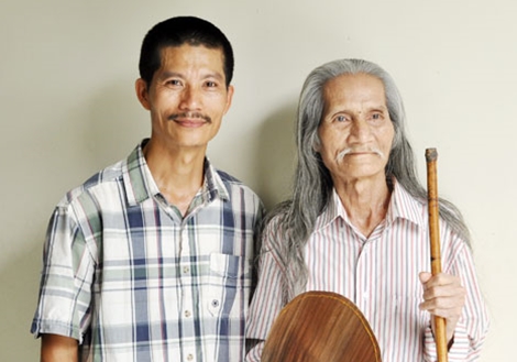 | Họa sĩ Nguyễn Ngọc Dân và thầy Trần Văn Trù. Ảnh: Quang Tú. |