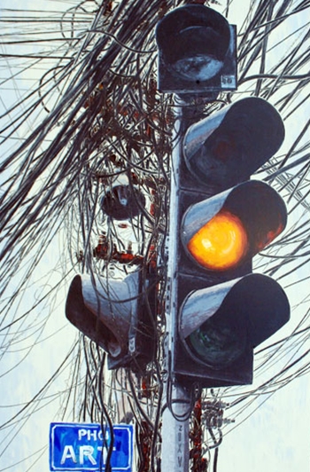 | Phố dây, sơn dầu, khổ 1,2x1,2m của Nguyễn Ngọc Dân. |