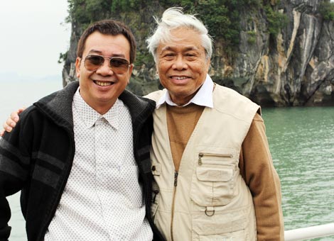| Nhà thơ Trương Nam Hương (trái) và nhà thơ Vũ Quần Phương tại Hạ Long (nơi tổ chức đêm thơ quốc tế) trong Liên hoan thơ Châu Á - Thái Bình Dương 2015. |