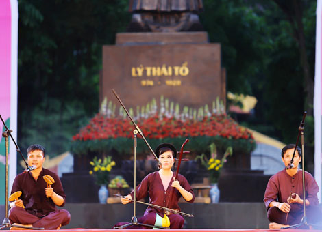 | Nhóm Xẩm Hà thành biểu diễn tại Tượng đài Lý Thái Tổ - Hà Nội ngày 17/5/2015. |