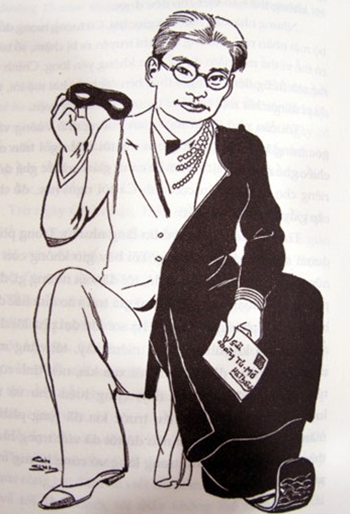 | Biếm họa về nhà văn Phạm Cao Củng trên báo Loa. |