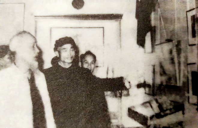| Chủ nhiệm Hoàng Việt Hưng hướng dẫn Chủ tịch Hồ Chí Minh thăm Bảo tàng Việt Bắc (Tư liệu gia đình). |