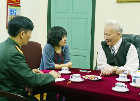 Đại tướng Lê Đức Anh gặp gỡ và trò chuyện với phóng viên Chuyên đề An ninh thế giới Giữa tháng - Cuối tháng. Ảnh: Đình Nguyễn.