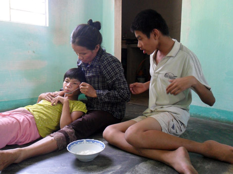 “Lúc đó bác sĩ nói sốc tâm lí, hỏi thăm gia đình thì mới biết do các con không được lành lặn như bao đứa trẻ bình thường nên đau lòng, suy nghĩ nhiều. Vì uất ức, khổ tâm nên sinh ra bệnh. Đúng là nỗi đau gia đình tôi bị trời đày…” – chị Minh bùi ngùi.