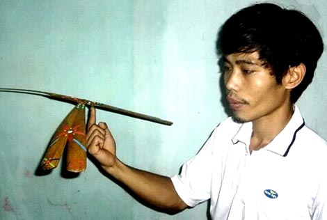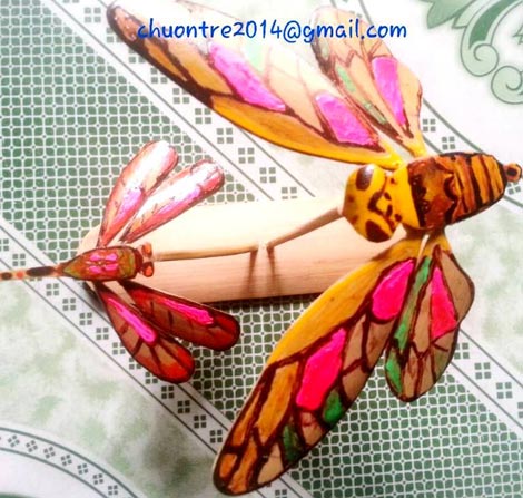 Những con chuồn chuồn tre được làm từ bàn tay tài hoa của Nguyễn Thanh Hải. |