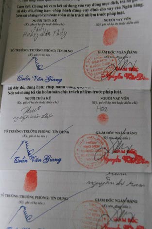 | Những dấu vân tay điểm chỉ thay chữ ký của người dân chài Cao Bình. |
