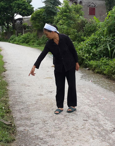 | Bà Cúc chỉ lại hiện trường nơi phát hiện ra chị Hồng. |