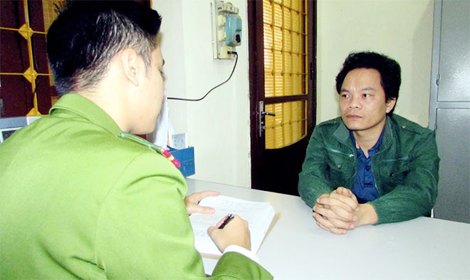 | Đối tượng Tô Đức Thiện tại cơ quan điều tra. |