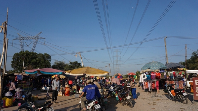 | Ngôi chợ nằm bên dưới hai đường điện cao thế trước khi bị giải toả |