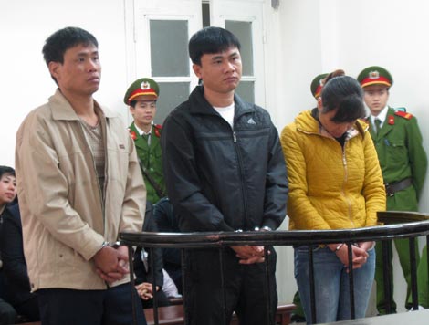 | Ba bị cáo: Hương, Tùng và Hoàng tại phiên xử. |