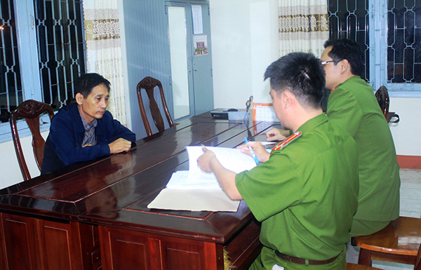 | Đối tượng Trần Ngọc Cung tại cơ quan công an. |