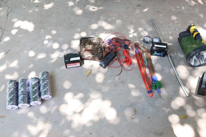 Sau nhiều giờ truy tìm, lực lượng Công an đã phát hiện và ra hiệu lệnh dừng xe. Qua kiểm tra, Công an xã An Long phát hiện trên xe có 10 con chó bị chích điện, trói chân bằng băng keo dính. Ngoài ra, lực lượng Công an còn phát hiện một khẩu súng bắn điện tự chế và toàn bộ tang vật mà chúng sử dụng trộm chó.