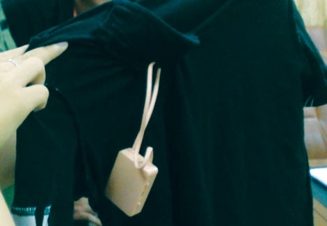 | Chiếc áo phông thí sinh Phạm Dương Long mặc có gắn thiết bị thu phát trên cổ. |