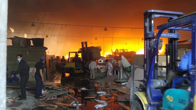 | Hiện trường vụ cháy tại KCN Ngọc Hồi vào tháng 12-2016. Ảnh: Dân trí. |