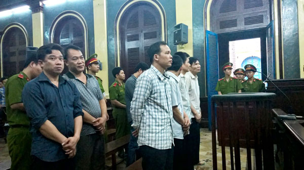 | Các bị cáo trong vụ án tại phiên tòa sơ thẩm. |