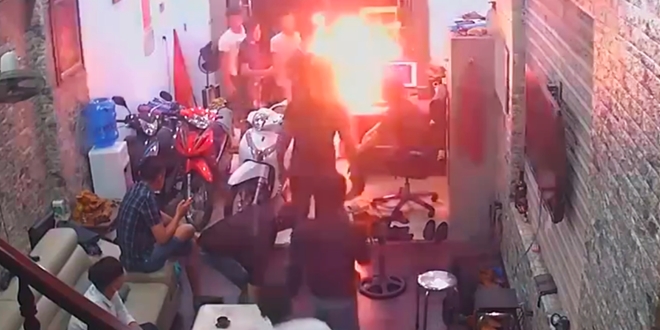 | Phát "chột" cầm can xăng xông vào tiệm cầm đồ rồi châm lửa |