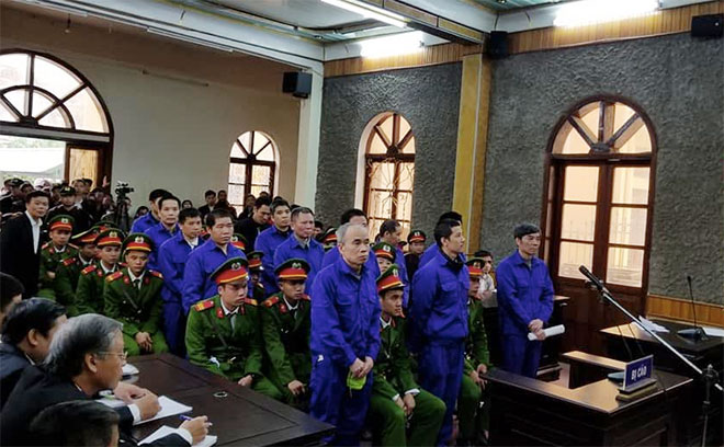 | Các bị cáo tại phiên xử. |