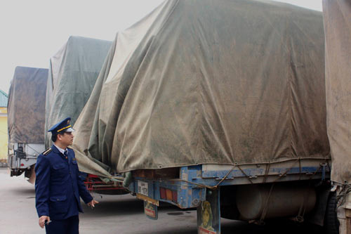 Tạm giữ 11 xe tải chở gỗ quá tải từ Lào vào Việt Nam