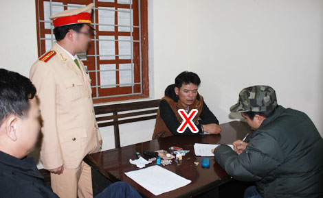 | Lê Hồng Văn (X) tại cơ quan Công an. |