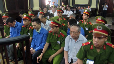 | Các bị cáo nguyên là cán bộ Công ty ALCII trong một phiên xử. Ảnh: VTC news. |