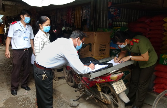 | Lực lượng chức năng xử phạt người không đeo khẩu trang nơi công cộng |