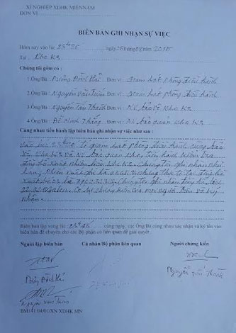Biên bản phát hiện sự việc ghi khống trên phiếu xuất kho so với đồng hồ bơm.