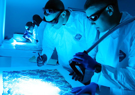 Với máy quay sử dụng quang phổ, các điều tra viên và kỹ thuật viên hình sự có thể soi chiếu các mẫu giấy viết rất nhỏ, xác định được chữ viết bị che giấu hoặc rất mờ, từ đó xác định được chất lượng giấy in và mẫu chữ viết gốc. Trong một số trường hợp, công nghệ này có thể so sánh và đưa ra kết quả phân tích các mẫu giấy đã bị phá hủy bởi cháy hoặc nước mà mắt thường không thể xác định được.