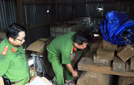 | Lực lượng Công an phát hiện gỗ lậu của Hà. |