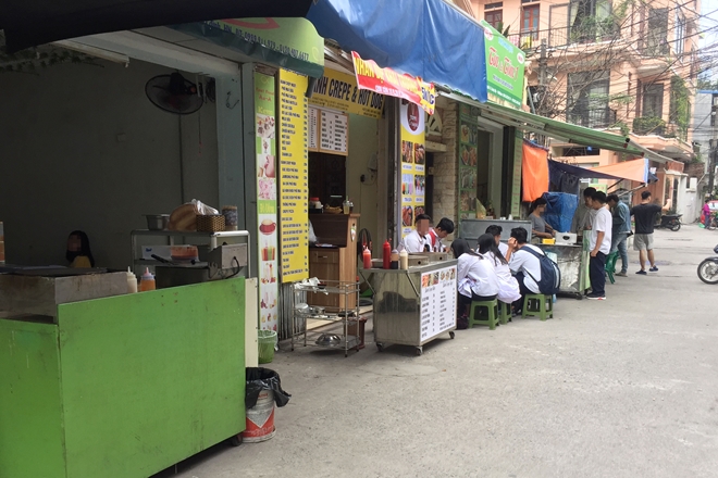 Sau tiếng trống trường tan học, hàng chục học sinh tụ tập mua đồ ăn bên những xe hàng bán đồ ăn vặt. Khi được hỏi tại sao lại yêu thích những món ăn ngoài cổng trường đến vậy, một em nhỏ trả lời rất vô tư: "Vì các món ở đây rất ngon mà lại còn rẻ nữa, chúng cháu mỗi đứa góp 10 nghìn là được ăn thoải mái".